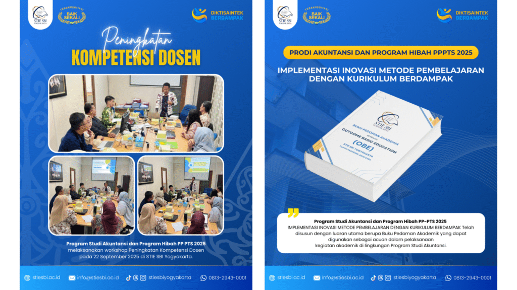 Sehubungan dengan adanya peluang program Penguatan Perguruan Tinggi Swasta (PP-PTS) Tahun 2025 dari Direktorat Jenderal Pendidikan Tinggi (Ditjen Dikti), Kementerian Pendidikan Tinggi, Sains, dan Teknologi, maka Yayasan Solusi Bisnis Indonesia menunjuk Ketua Pelaksana Hibah Dr. Lucia Ika Fitriastuti, SE., M.Si untuk mengusulkan hibah dengan judul “Optimalisasi Pembelajaran Berdampak dan Berbasis Kebutuhan Dunia Kerja melalui Integrasi Outcome-Based Education dan Teknologi Informasi”. Dari judul pokok tersebut Sekolah Tinggi Ilmu Ekonomi SBI mengusulkan dua program pengembangan, yaitu: Pertama, program yang diusulkan oleh Program Studi Akuntansi berjudul Inovasi Metode Pembelajaran Untuk Implementasi Kurikulum Adaptif dan Berdampak Terhadap Peningkatan Kompetensi Lulusan Akuntansi. Kedua, program yang diusulkan oleh Program Studi Manajemen berjudul Transformasi Metode Pembelajaran Berbasis Outcome untuk Meningkatkan Relevansi Kompetensi Lulusan Manajemen. Berdasarkan dua program pengembangan yang diusulkan oleh 2 Program Studi di Sekolah Tinggi Ilmu Ekonomi SBI maka memunculkan usulan kebutuhan sumberdaya berupa usulan anggaran belanja kelompok peralatan Teknologi Informasi dan Desain Komunikasi (TIDK).